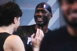 三分5中4砍12分掀翻卫冕冠军!里斯赛后在更衣室被队友泼水庆祝